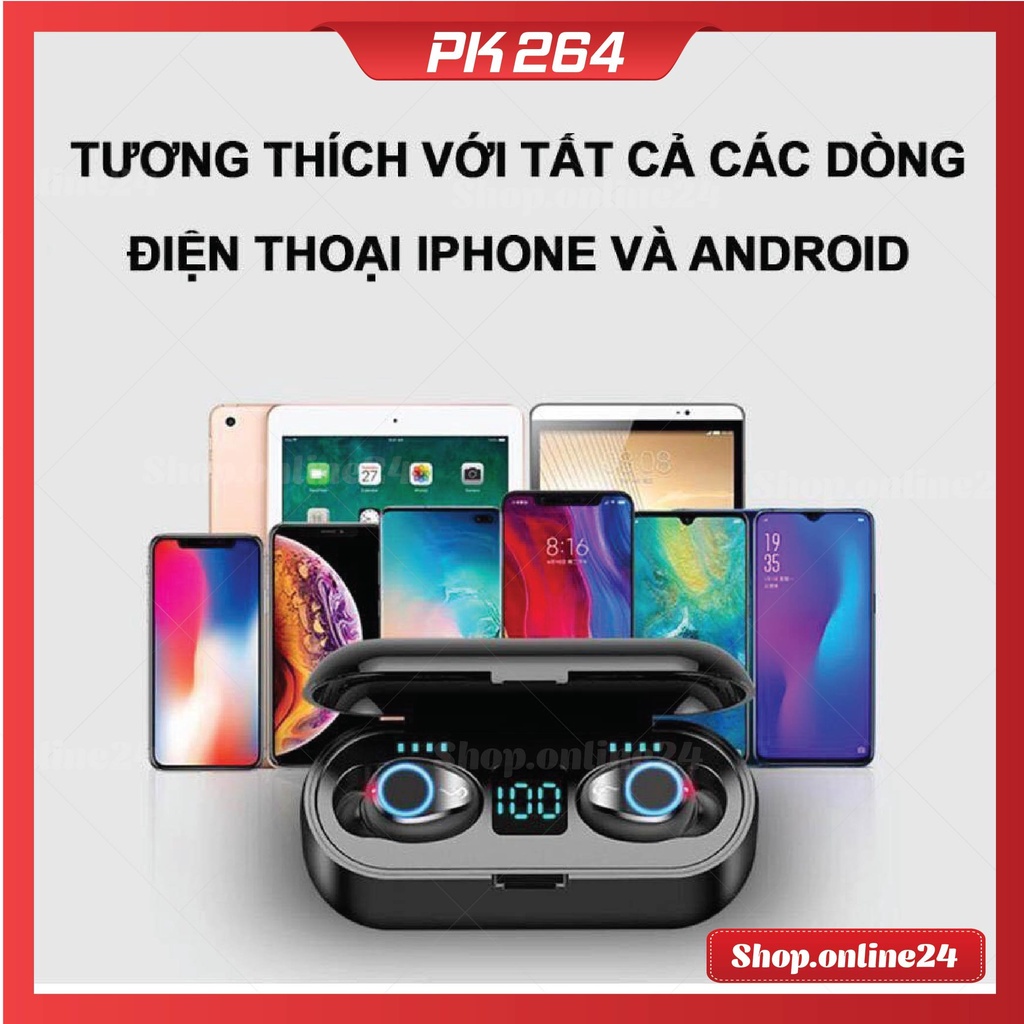 Tai nghe Bluetooth AMOI F9 TWS 5.0 bản QUỐC TẾ không dây cảm ứng chống nước IPX5, chống ồn tích hợp sạc dự phòng 2500mAh free ship